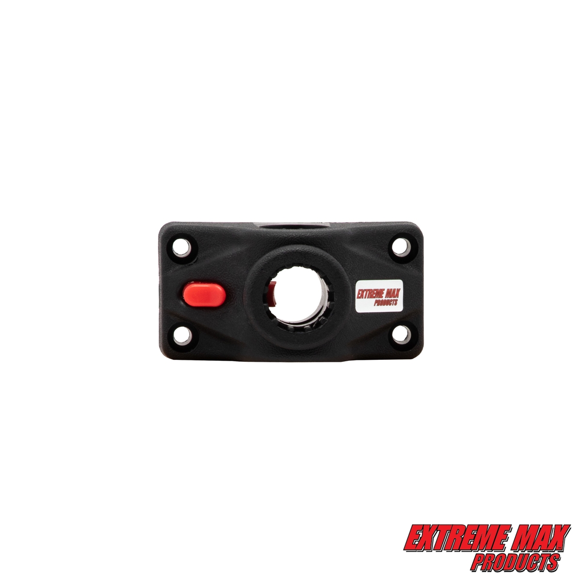 The bracket features a fixed mount base that rotates 360° to keep your rod in the right fishing hole. The base features a quick-release button to easily retrieve your rod the moment you need it. The base attaches to any flat surface or track base, such as a boat gunwale or the Extreme Max aluminum Slider Base and nylon Slider Trax series bases.