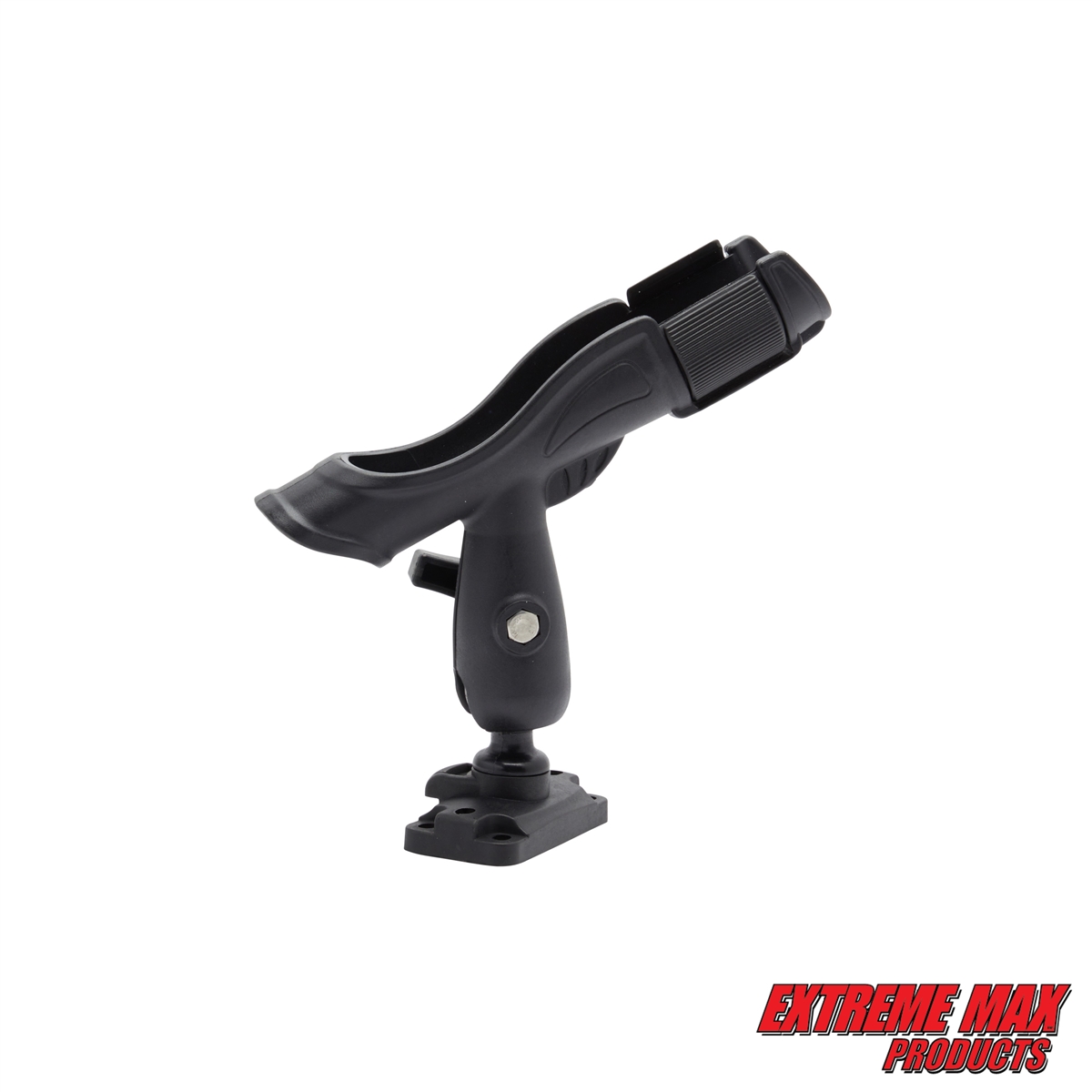 The Extreme Max 3006.8629 Ball-Mount Omnidirectional Adjustable Rotating Fishing Rod Holder is designed with a ball-mount socket that allows for infinite fine tuning capabilities when setting your rod. Its universal styling allows it to fit most rods and reels with a twist on/twist off rod lock. The base attaches to any flat surface or track base, such as a boat gunwale or the Extreme Max aluminum Slider Base and nylon Slider Trax series bases.