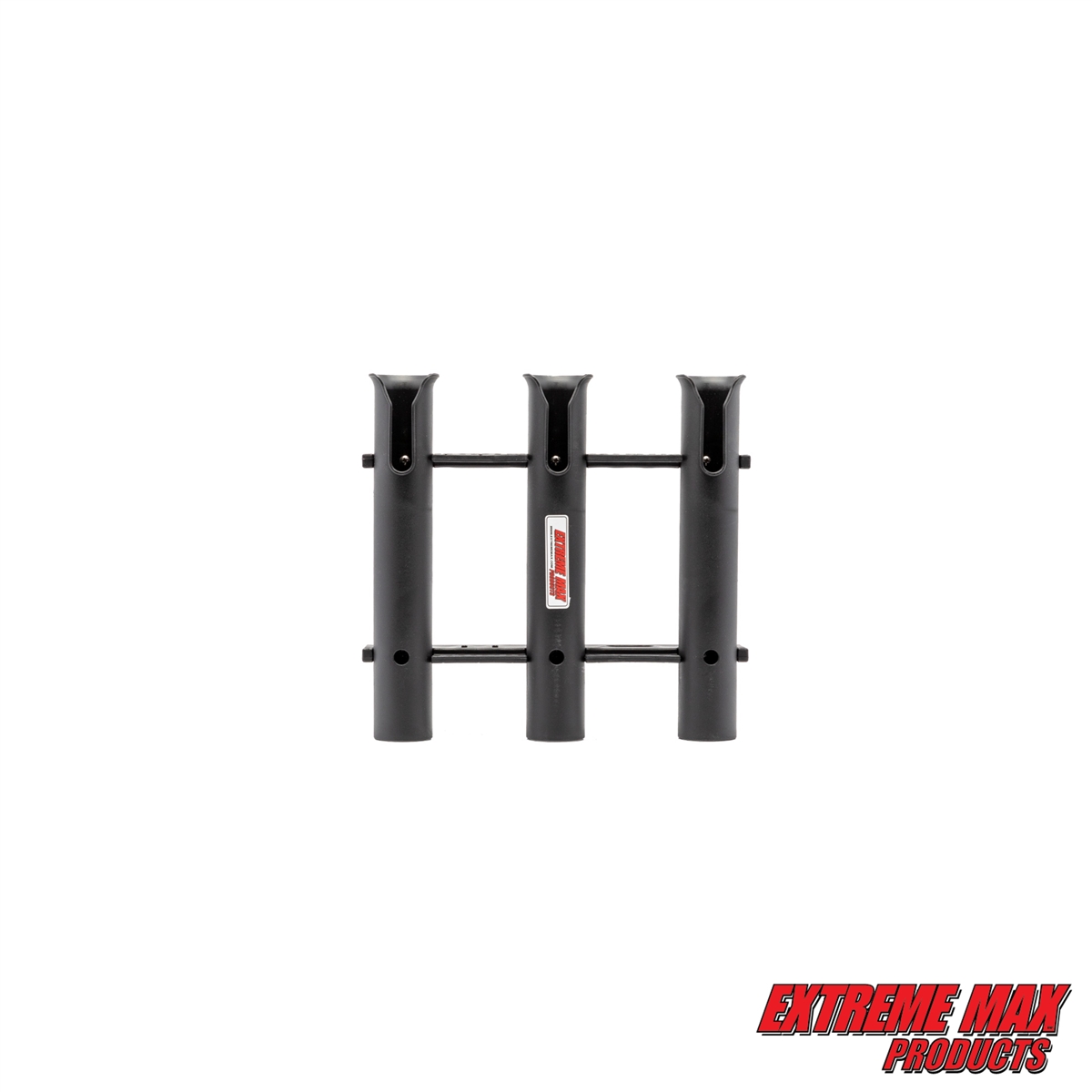 Storage, transport, or on the water, nothing works better to manage your rods than the Wall-Mount Poly Fishing Rod Holder from Extreme Max Products! Its simple, refined design features a tapered flanged opening at the top for easy in and out with your rods, holding them securely yet keeping them at the ready for the moment you need them. Each holder also includes slots for pliers and knives for each access. The holder mounts to a vertical surface, such as a garage or trailer wall, your truck bed, or the gunnel wall of your boat. Due to the variety of surfaces to which the rod holder may be mounted, mounting hardware is not included.