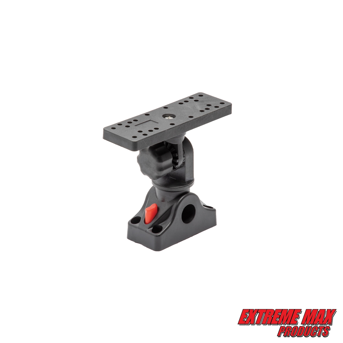 Extreme Max's range of Universal Fish Finder Head Unit Mounts is designed to fit most models of fish finders available today. Each mount comes with a locking base for new installations, or use an existing rod holder base already installed on your boat. The base attaches to any flat surface or track base, such as a boat gunwale or the Extreme Max aluminum Slider Base and nylon Slider Trax series bases.