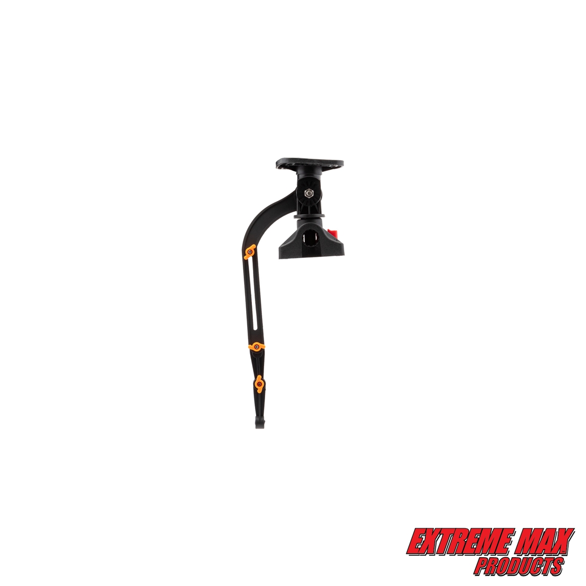 The Extreme Max 3006.8669 Universal Fish Finder Head Unit & Transducer Arm Rod Holder Mount is designed for use with paddleboards (SUPs) and kayaks. It includes a locking base for new installations, or mount the arm to an existing rod holder already mounted to your kayak or SUP. The arm provides a universal head unit mounting plate and universal transducer mounting plate that work seamlessly with most head units and transducers found today. Each mounting bracket includes adjustment points to secure the ideal angle for your transducer and head unit. The base attaches to any flat surface or track base, such as a boat gunwale or the Extreme Max aluminum Slider Base and nylon Slider Trax series bases.