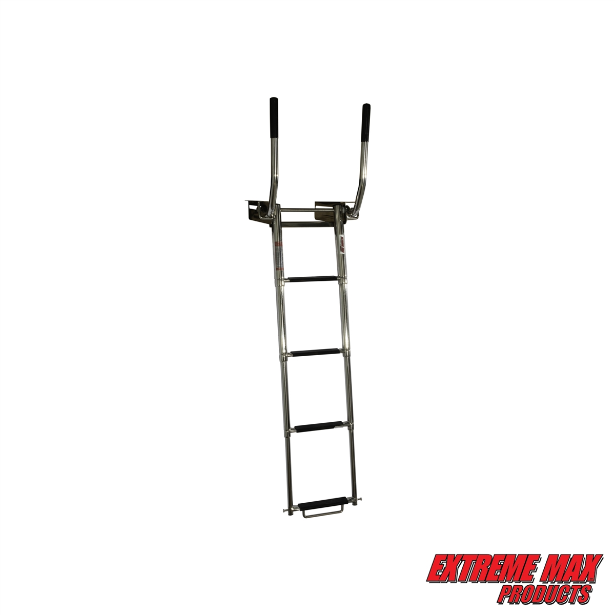 Add a versatile ladder to your pontoon, dock, or swim raft! The undermount design saves valuable deck space while still offering a full length ladder, while the telescoping design minimizes the ladder's footprint allowing it to fit in many places a standard, non-telescoping ladder would not fit. When. it's time for use, unlock the ladder and pull it outward to its full length and it's ready to go. Unique to Extreme Max, the ladder also features two fold-out handles that make entering and exiting the water easier. Each handle offers a comfortable, grippy rubber handle for added security and safety while using the ladder. The ladder is constructed of marine-grade stainless steel specifically engineered for strength and longevity in a harsh marine environment. Due to the variety of mounting surfaces to which the ladder may be mounted, mounting hardware is not included.