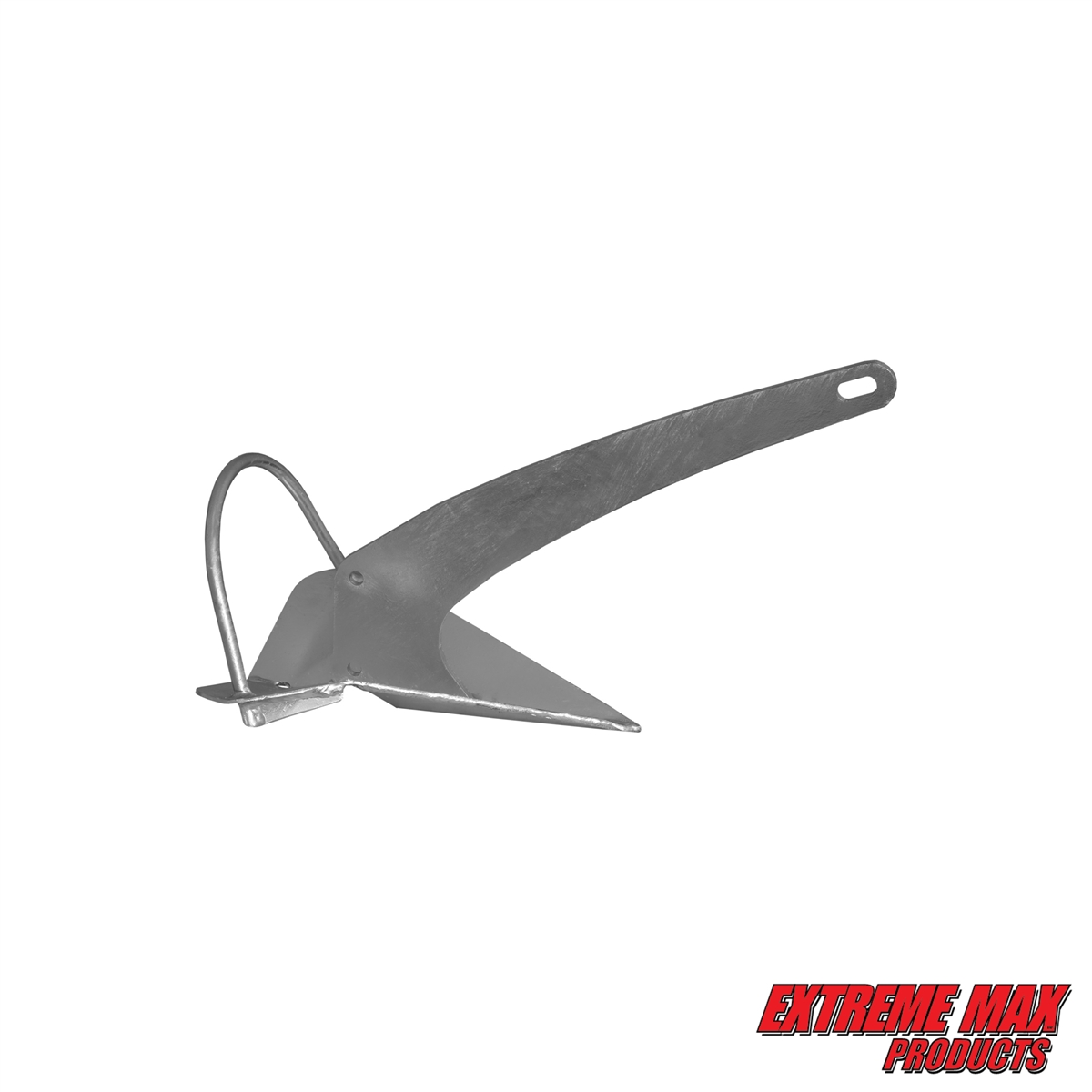 Extreme Max 3006.9282 Heavy-Duty Galvanized Self-Righting Shovel Anchor with Roll Bar - 20 lbs., Works Great in Mud, Sand, Clay, and Weeds