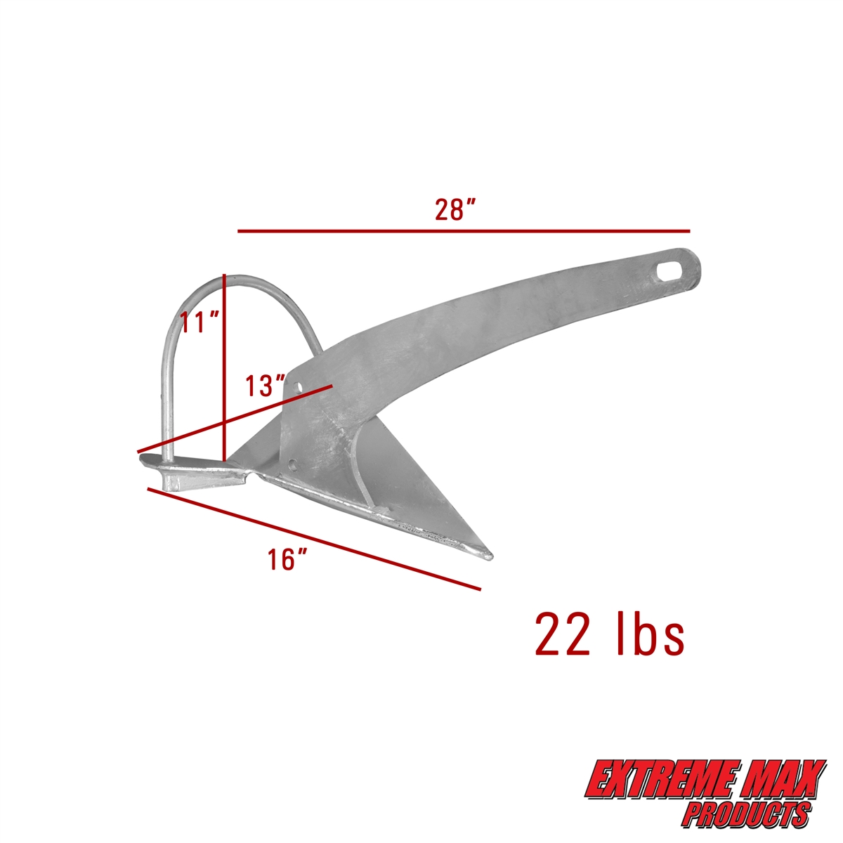 Extreme Max 3006.9285 Heavy-Duty Galvanized Self-Righting Shovel Anchor with Roll Bar - 22 lbs., Works Great in Mud, Sand, Clay, and Weeds