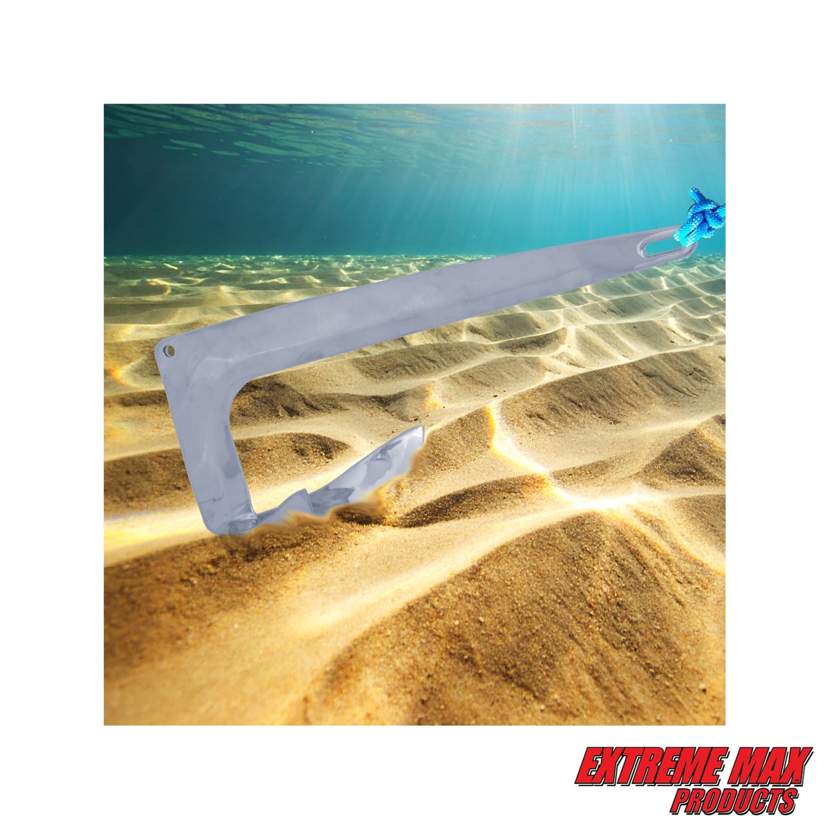 Extreme Max 3006.9282 Heavy-Duty Galvanized Self-Righting Shovel Anchor with Roll Bar - 20 lbs., Works Great in Mud, Sand, Clay, and Weeds
